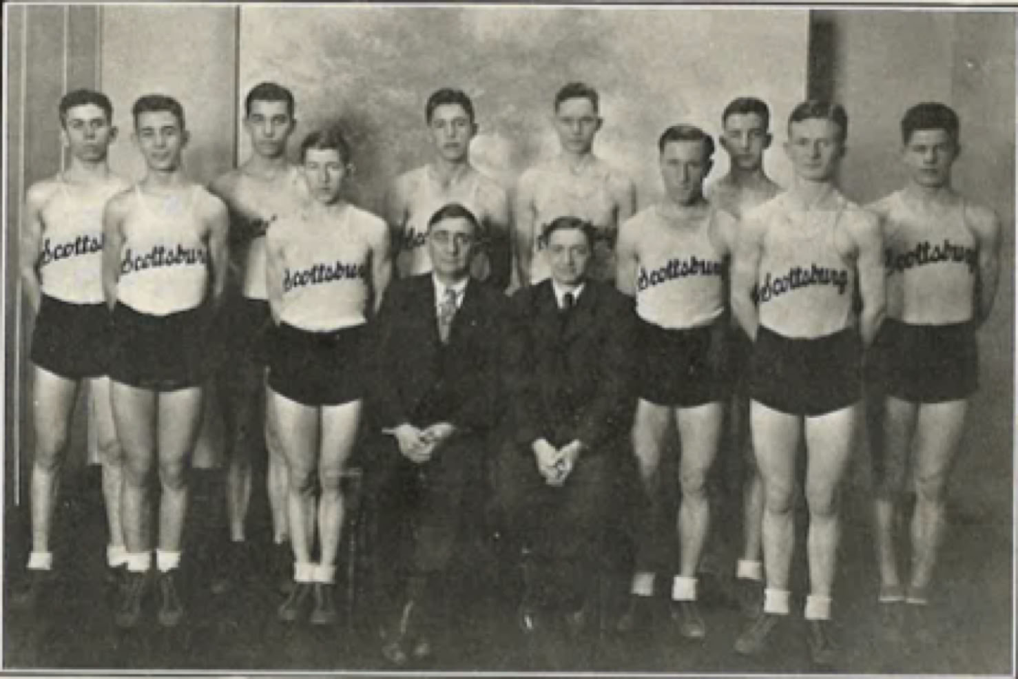 Coach Hoffner, Watterson, McClellan. Back row—M. Carter, McAdams, Amick,