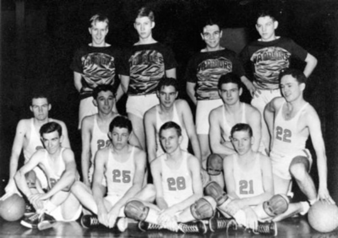 Kneeling (L to R) Tom Ritter, Robert L. Amick, Thomas Harmon, Dick Head, Basil Amick