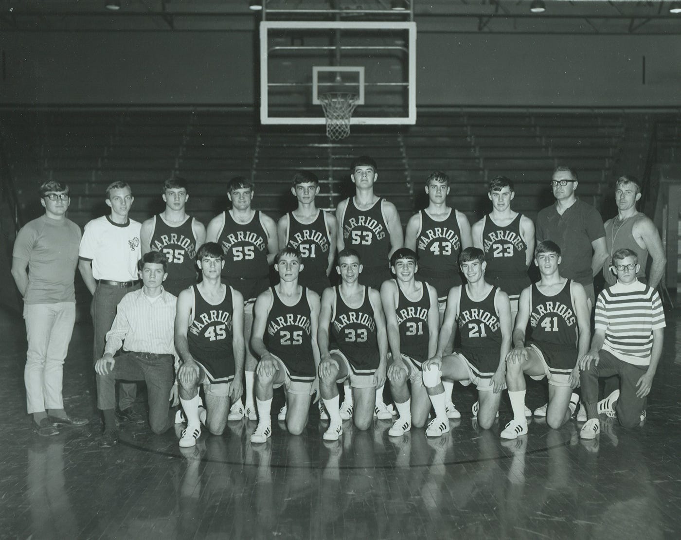 Kneeling (L-R): Monty Craig (Student Manager), Rodney Rudder, Rick Richardson, Tony Barley, Joe Cravens, Bob Lyttle, Mike Sears, Darrell Scifres (Student Manager)