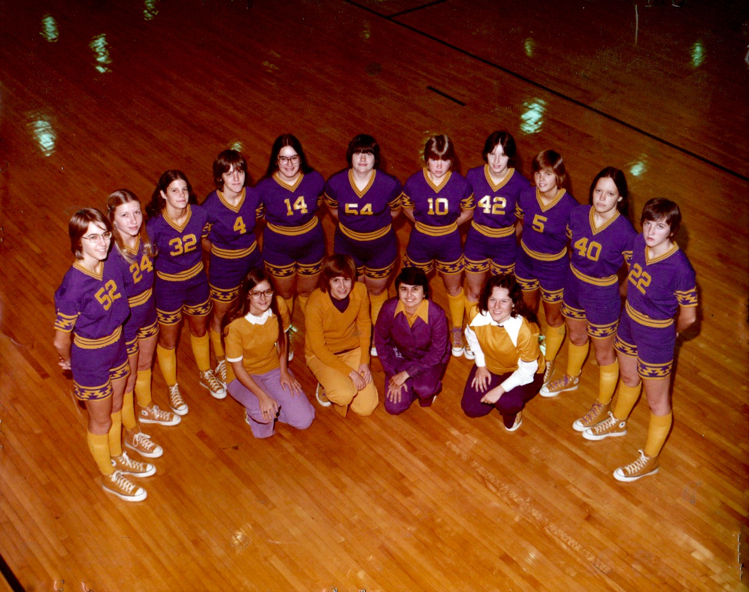 Front: Manager Robin Campbell, Coach Donna Cheatham, Coach Jean Phillips, Manager Jeanne Hedge. Back: Dixie Nicholas, Marsha Mitchell, Cindy Piet, Rhonda Smith, Cindy Johnson, Leslie McDaniels, Bev StClair, Glenda Pruitt, Riley Bayes, Debbie Mathews, Melinda Sparkman.