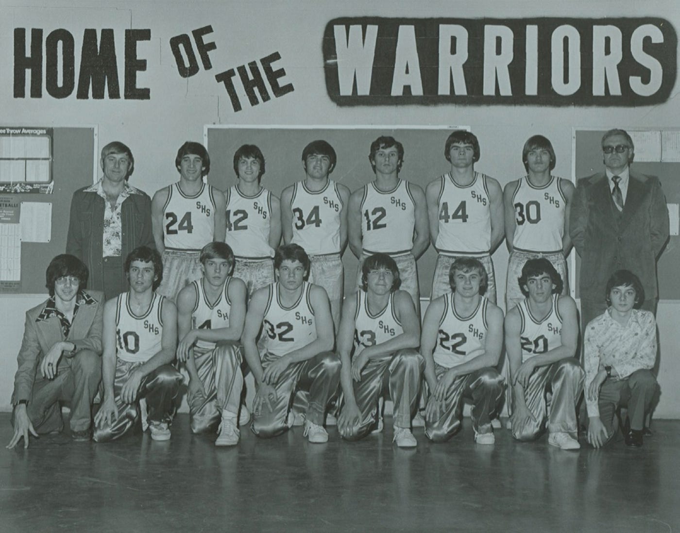 2nd Row (L to R) Coach Tom Dietrich, Bart Draper, Roger Boley, Bret Johnson, David Amick, Elmer Smith, Tim Hutchinson, Coach Jim Barley