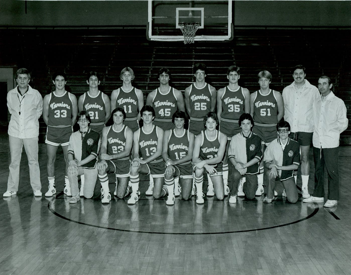 Standing (L-R): Buff Gardner (Athletic Director), Brian York, Jesse Bright, Troy Clampitt, Randy Manns, David MacIntosh, Mike Ferrell, Keith Henderson, Steve Meyer (JV Coach), Max Perry (Varsity Coach)