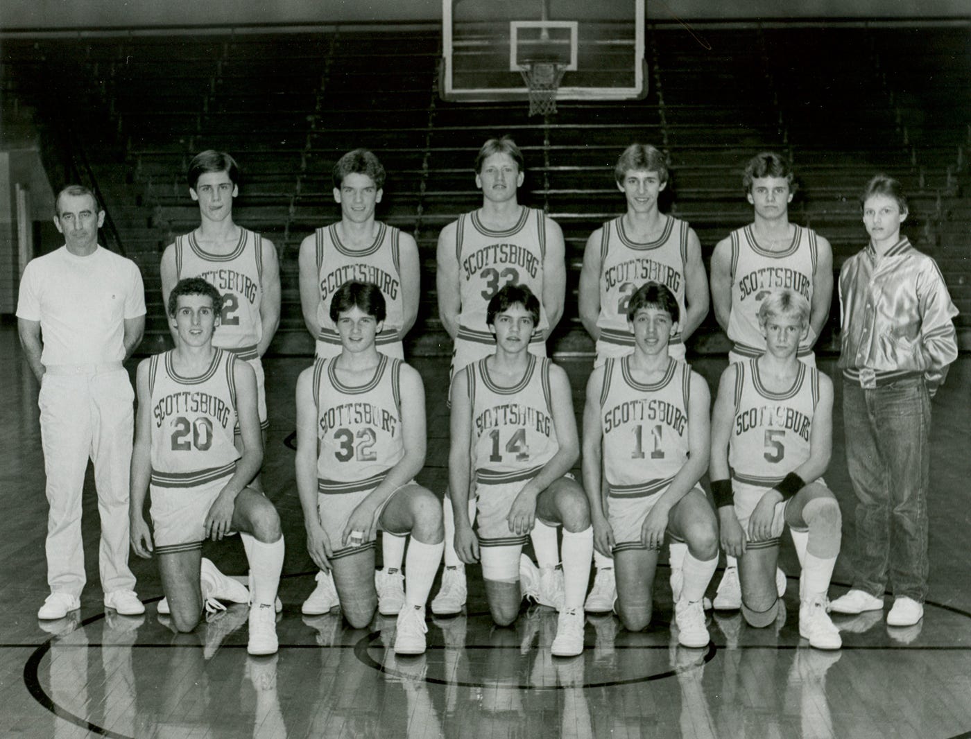 2nd Row (L to R) Head Coach Max Perry, Scott Montgomery, David Hardin, Phil Thomas, Chuck Souder, Henry Reynolds, Mgr. Archie Campbell
