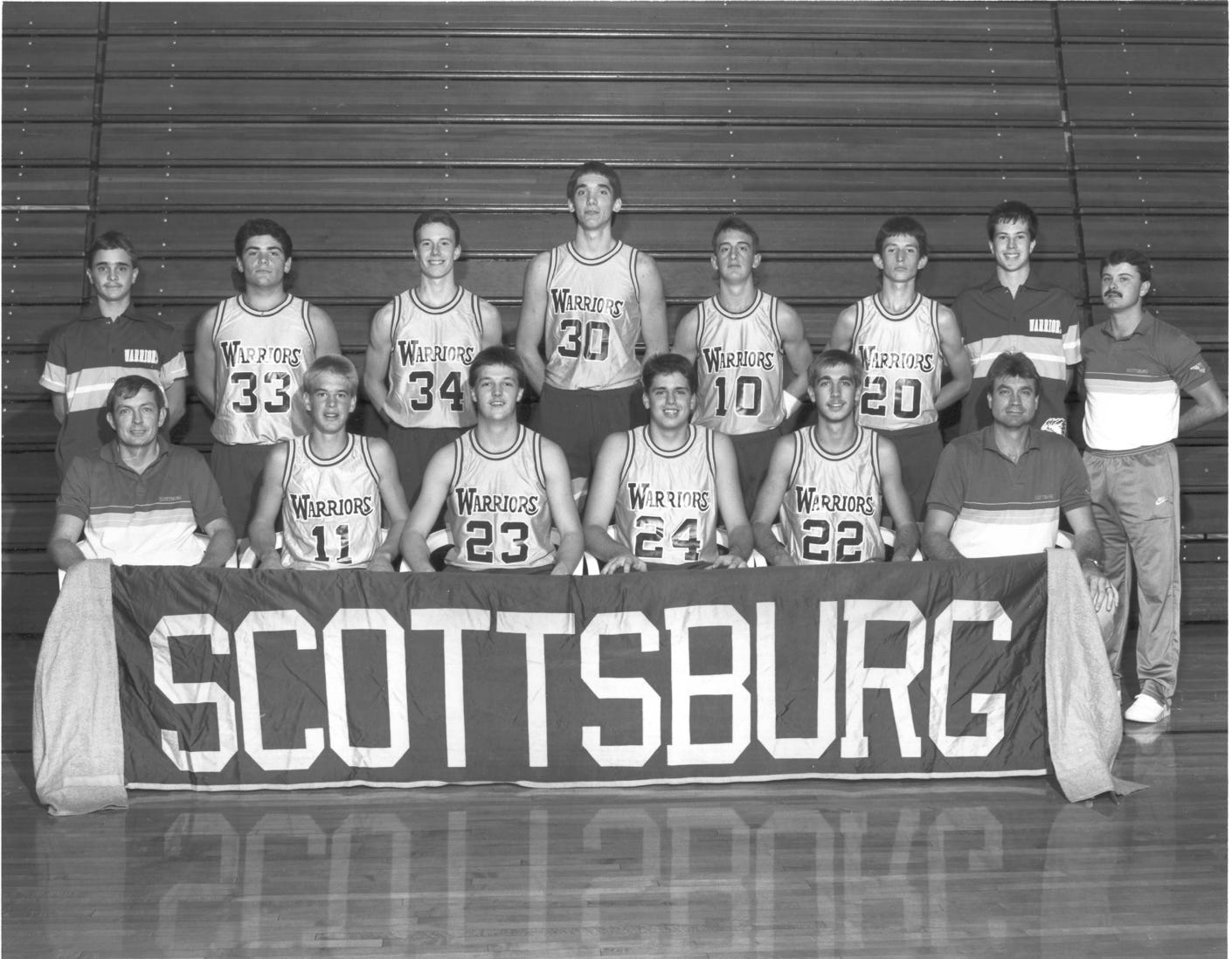 2nd Row (L to R) Mgr. Jeff Nicholson, Joe Wolf, Steve Schafer, John Ashley, Tim Borden, Jeff McNeely, Mgr. Aaron Lewis, Asst. Coach Randy Edwards