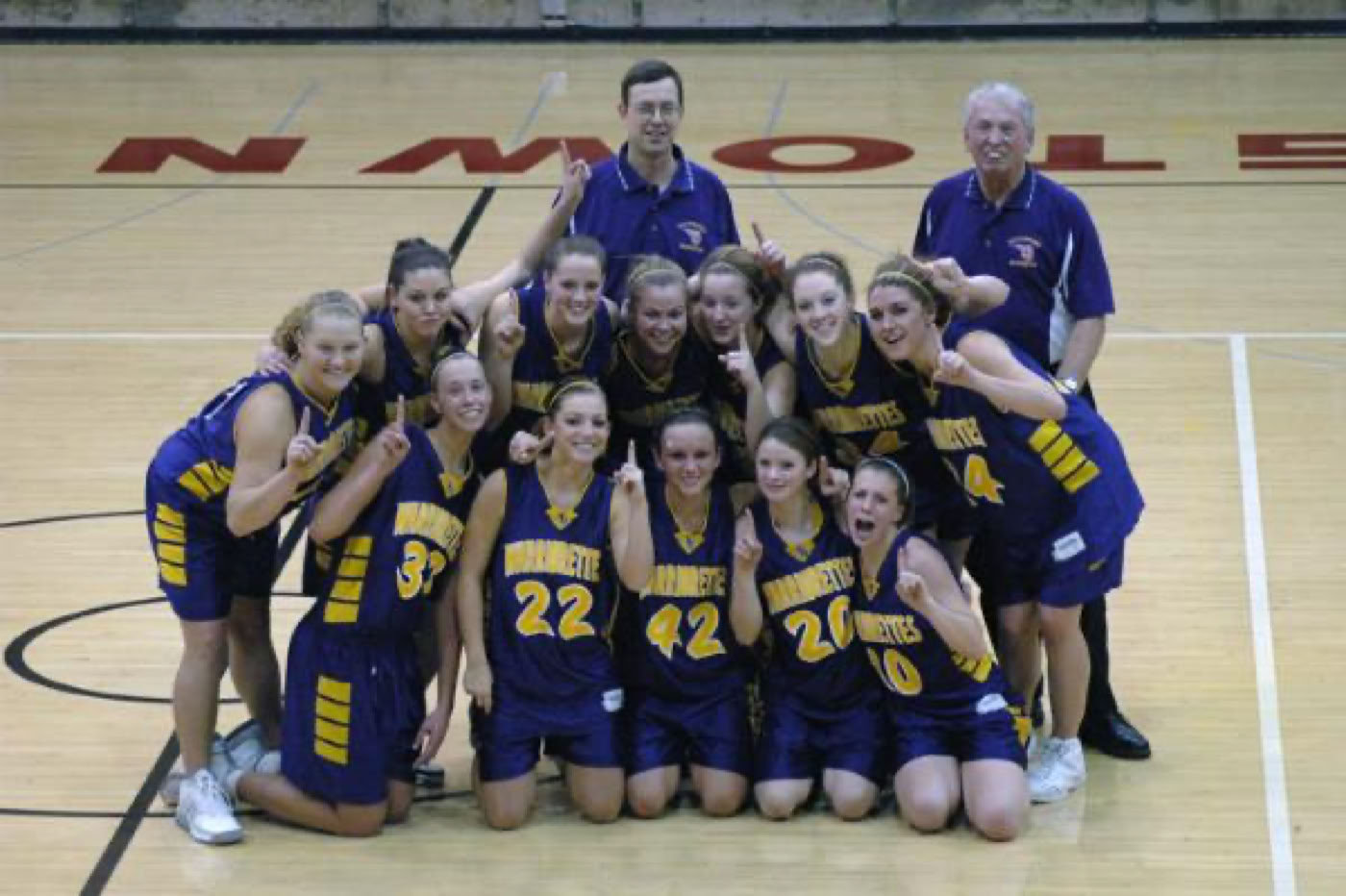 Front Row (L to R): Asst. Coach John Gullion, Coach Terry Rademacher, Lauren Wells, Courtney Howard, Brittany Bess, Katie Gross, Morgan Means, Jamie Collins, Andrea Rademacher, Tia Deaton, Tristan Elam, Kayla Shaw, Stephany Peacock, Sara Wells, Mgr. , JV Coach Melinda Sparkman