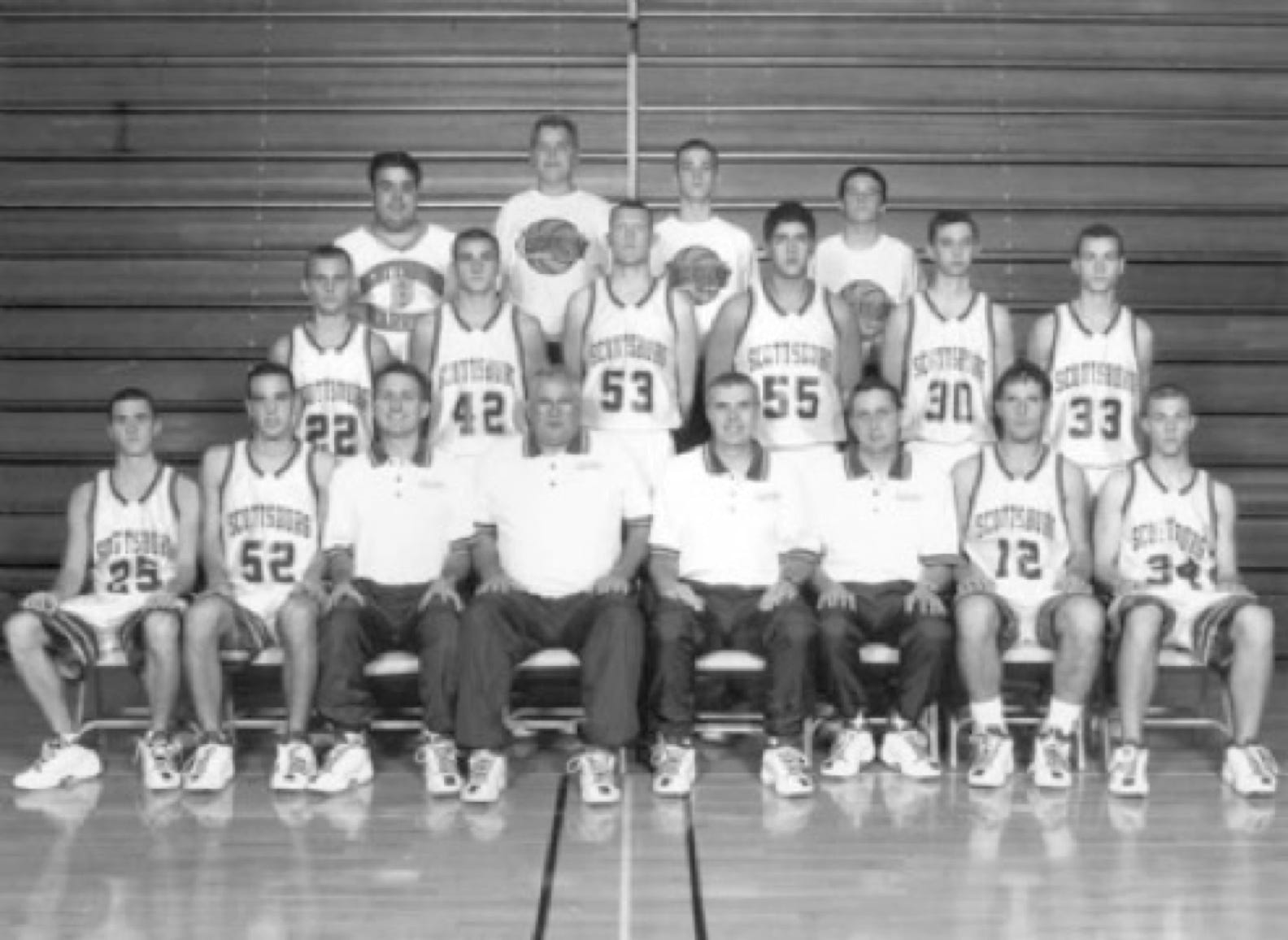 1st Row (L to R) Nathan Hall, Luke Smith, Asst. Coach Marc Slaton, Asst. Coach Ron Slaton, Head Coach Brady Wells, Asst. Coach Mark Bridgewater, Jacob Johanningsmeier, Brent Calloway