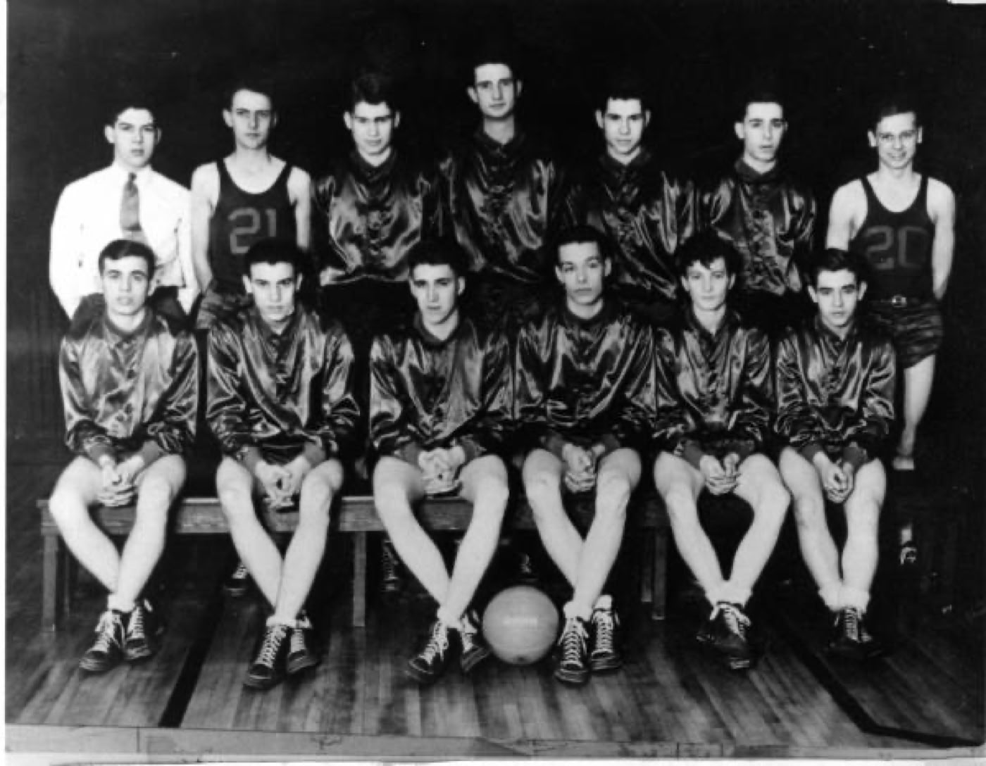 Standing (L to R) Sam Wells (Student Mgr), Charles Stewart, Jay Payne, Donald Blake, James Funk, Glen Everhart, Fred Densford