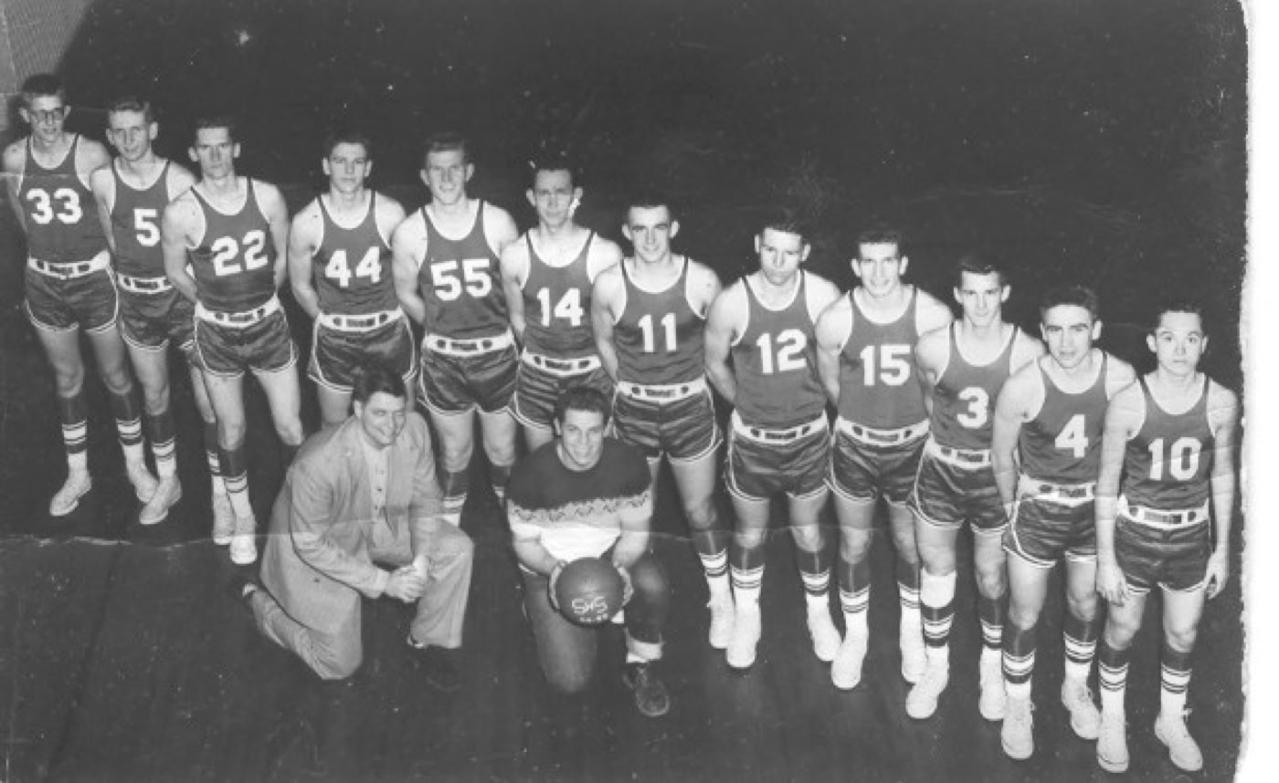 Right to Left Jennis Stidham, Sam Weir, John Case, Bob Pedan, Larry Amick, Bob Linzay, Sam Gross, Jim Swinford, Phil Stewart, Hubbard Houghland, Sherman Franz, Vern Altemeyer