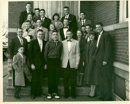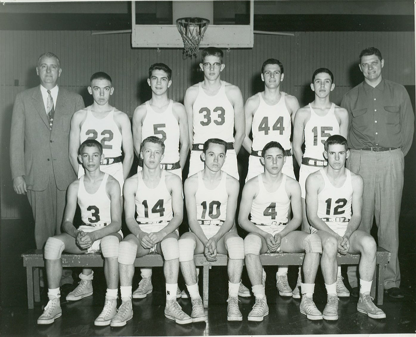 Back Row (L to R) Principal W. H. Spradley, Sherrill Miller, Lynn Hayes, LaVern Altemeyer, Phil Stewart, Gregory Bonsett, Coach Charley Meyer