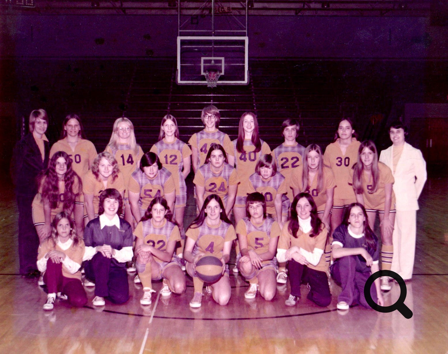 3rd Row (L to R) Head Coach Donna Cheatham, Debbie Bulington, Teresa Barnes, Pam Jones, Dixie Nicholas, Fran Collings, Julie Smith, Debbie Matthews, Asst. Coach Jean Phillips