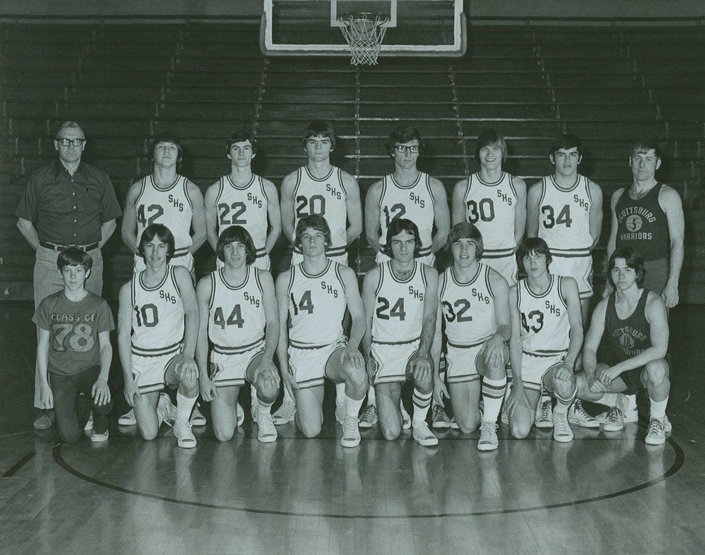 Standing (L-R): Jim Barley (Coach), Paul Davidson, Gerald Smith, Elmer Smith, David Amick, Tim Hutchinson, Bret Johnson, Tom Dietrich (Assistant Coach)