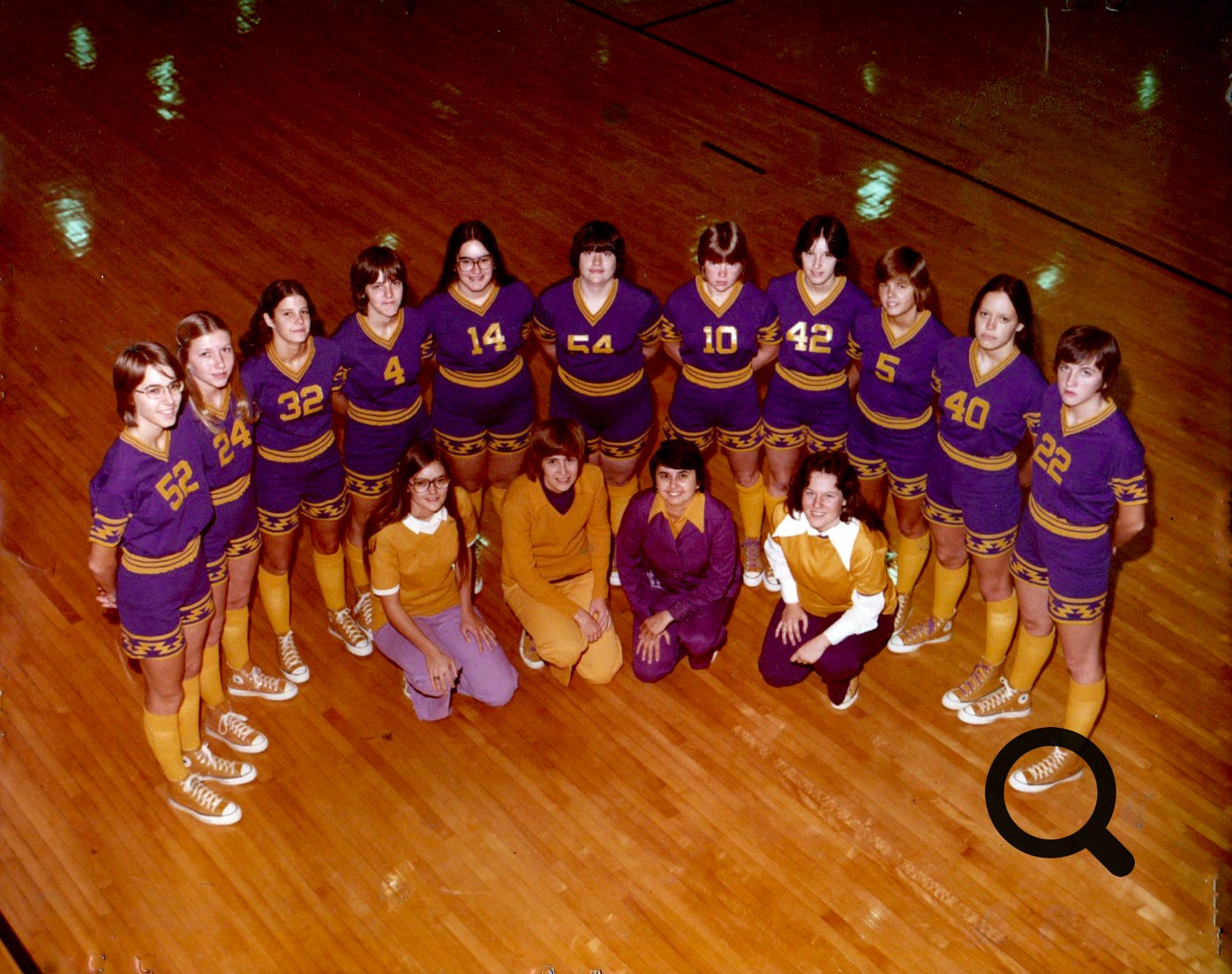 Front: Manager Robin Campbell, Coach Donna Cheatham, Coach Jean Phillips, Manager Jeanne Hedge. Back: Dixie Nicholas, Marsha Mitchell, Cindy Piet, Rhonda Smith, Cindy Johnson, Leslie McDaniels, Bev StClair, Glenda Pruitt, Riley Bayes, Debbie Mathews, Melinda Sparkman.