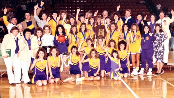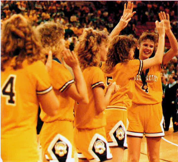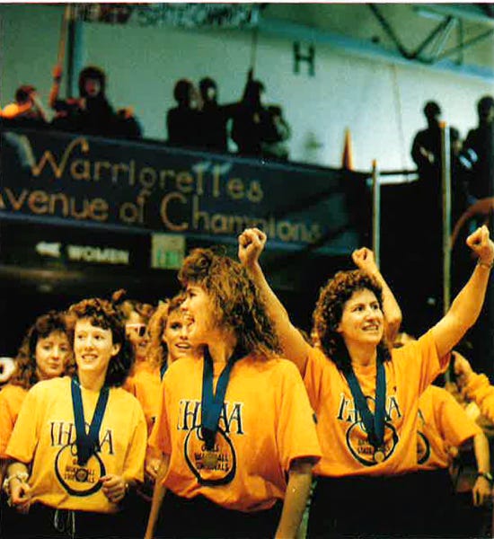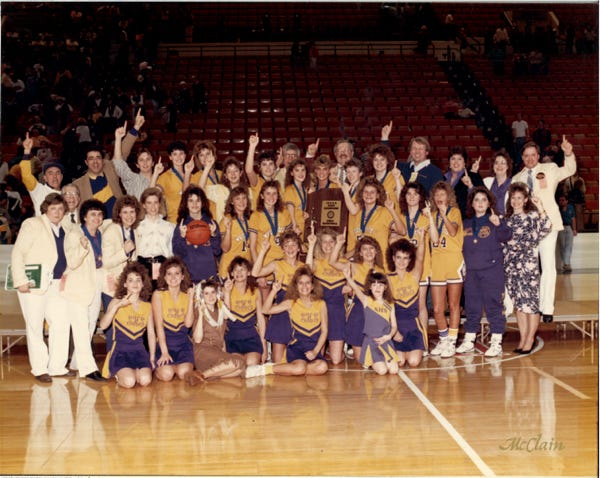 2nd Row (L to R) Coach Donna Cheatham, Carrie Thompson, Alisa Rogers, LeeAnn McCandless, Melanie Hughbanks, Asst. Coach Cheryl Miller