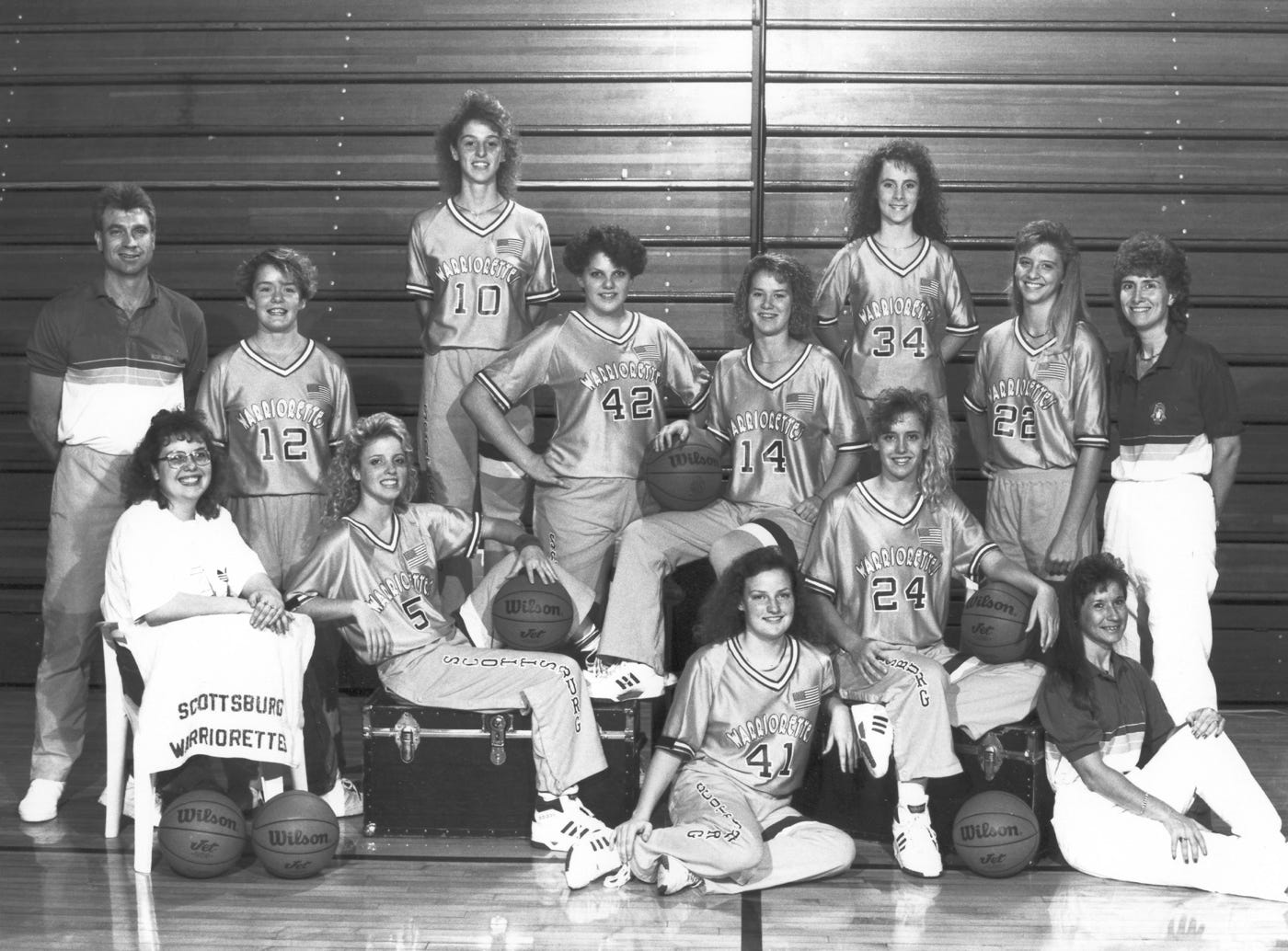 Standing (L to R) Assistant Coach Todd Howard, Patty Hutchinson, Angie Fouts, Candy Gray, Christy Hutchinson, Leslie Thompson, Jamie Mays, Coach Donna Cheatham