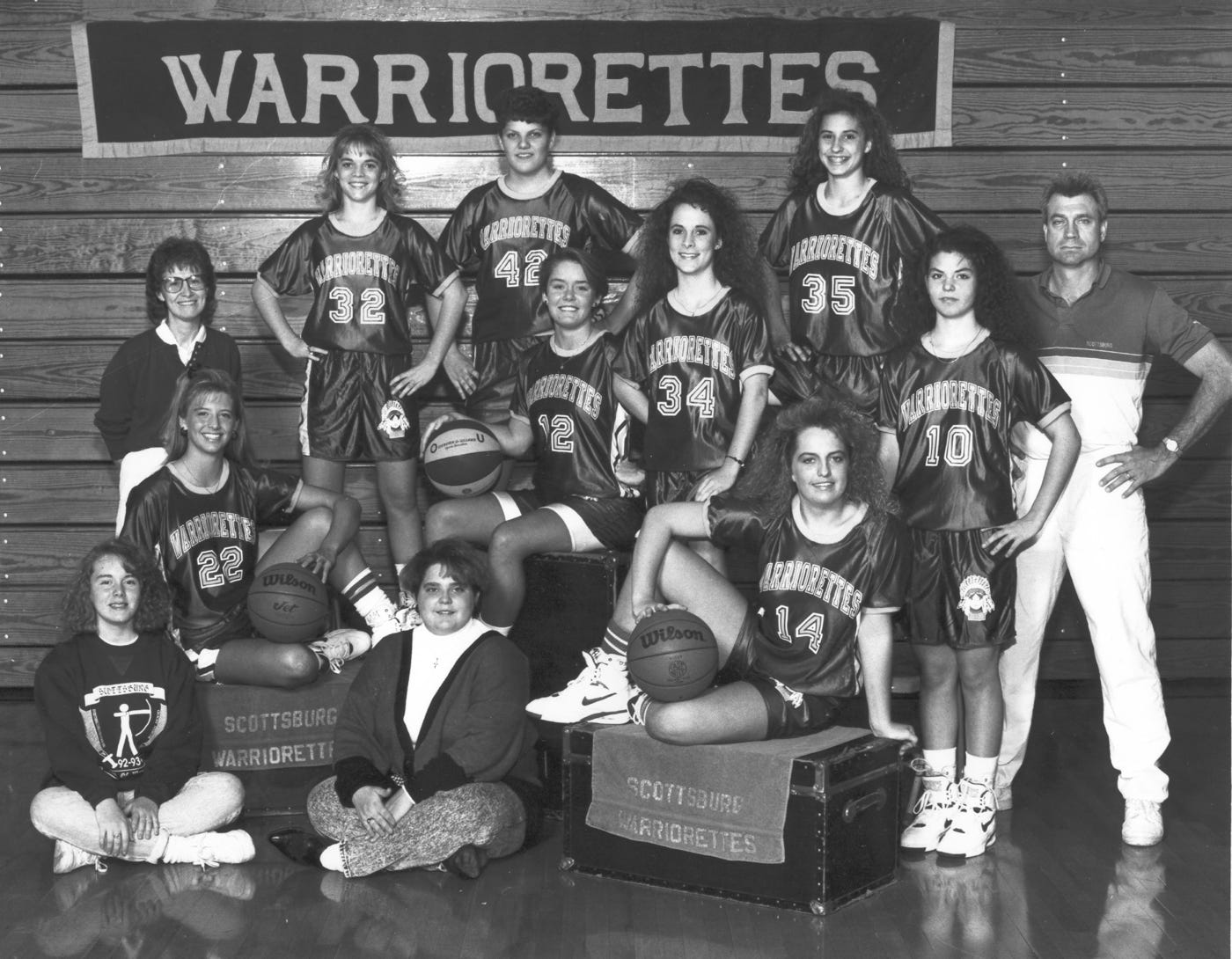 3rd Row (L to R) Coach Donna Cheatham, Patty Hutchinson (12), Leslie Thompson (34), Assistant Coach Todd Howard