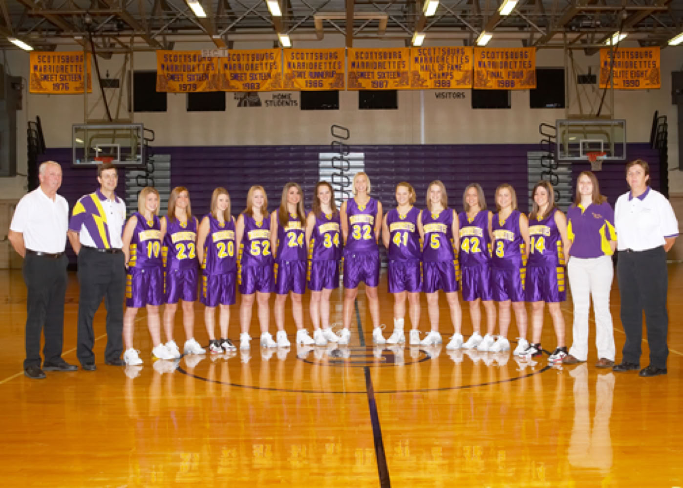 Front Row (L to R): Asst. Coach John Gullion, Coach Terry Rademacher, Lauren Wells, Courtney Howard, Brittany Bess, Katie Gross, Morgan Means, Jamie Collins, Andrea Rademacher, Tia Deaton, Tristan Elam, Kayla Shaw, Stephany Peacock, Sara Wells, Mgr. , JV Coach Melinda Sparkman