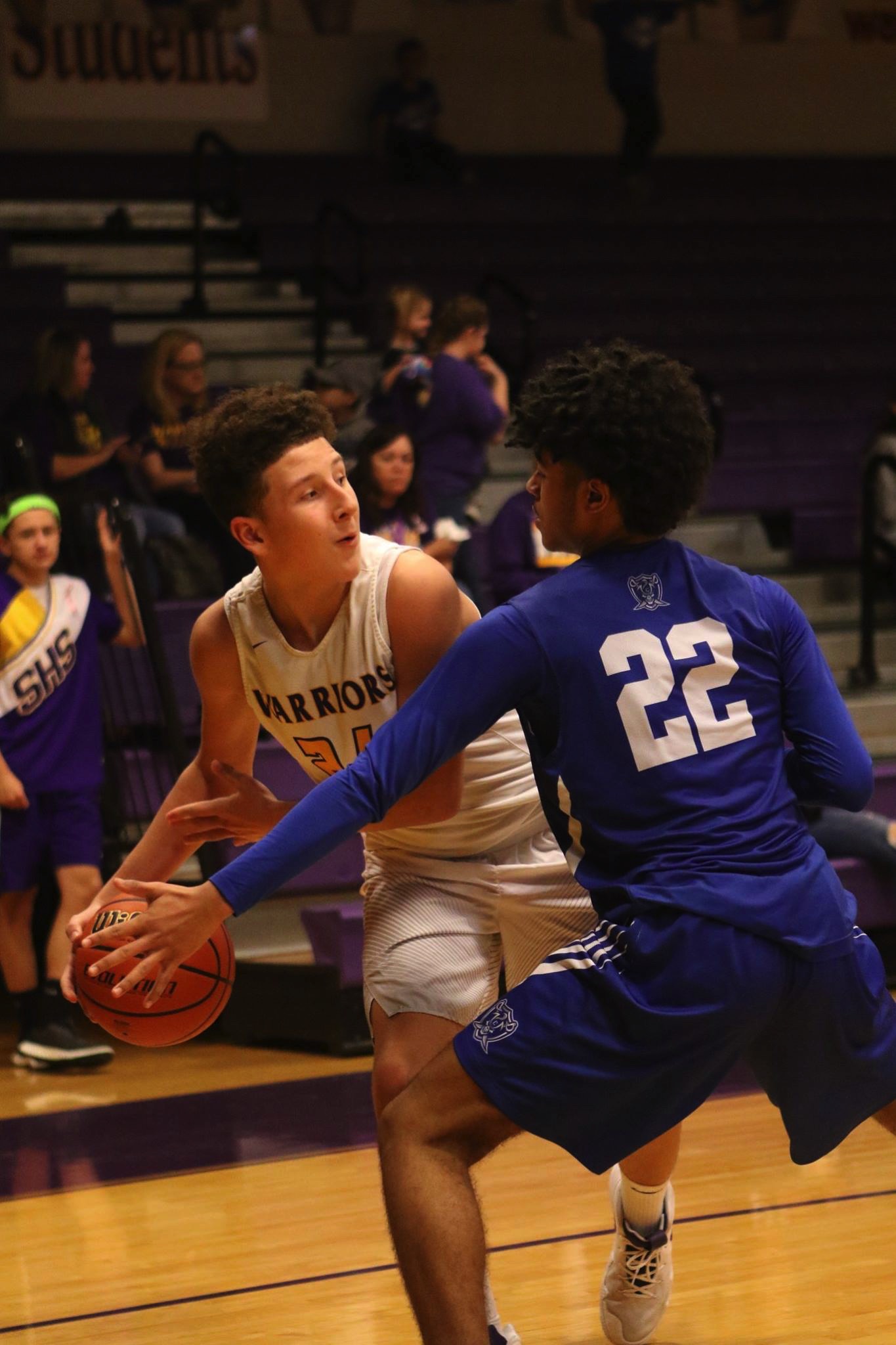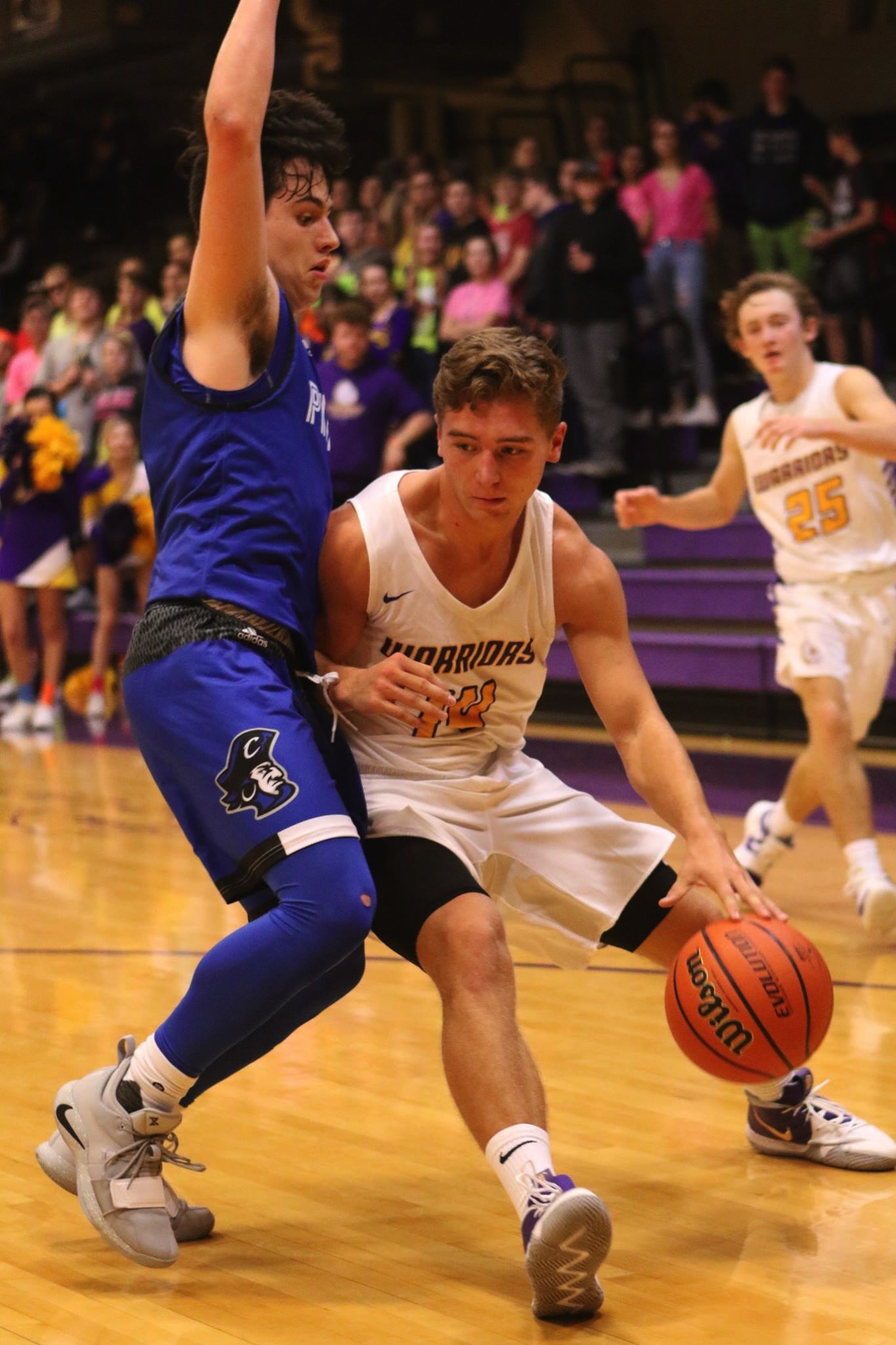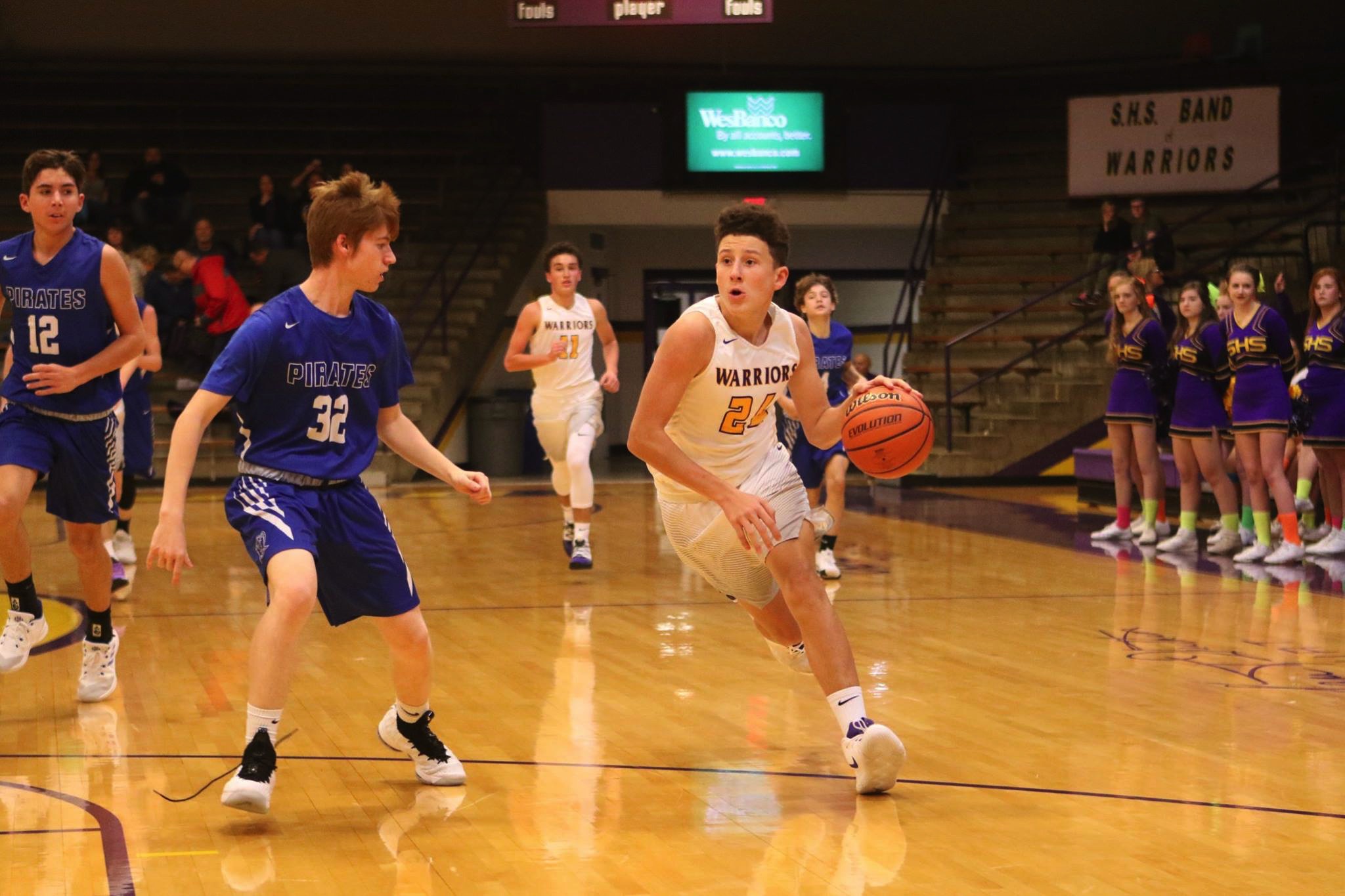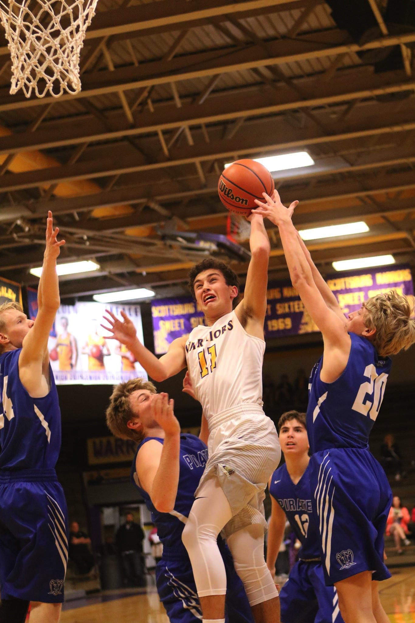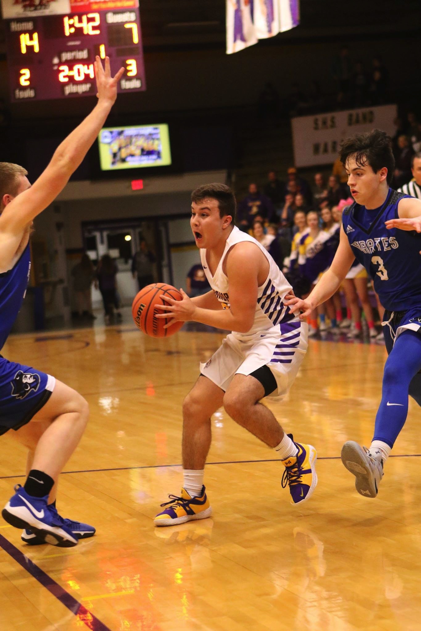 The "Pressure Cooker" lived up to its name as the Warriors held the Pirates to just 14 points in the first half, including a four-point second quarter. Charlestown opened the game with a 7-6 lead but then back to back three's by senior guard Mitchell Prince and Neace put the Warriors up 10-7 and gave them a lead they would never relinquish. Scottsburg would finish the first quarter on a 9-3 run, highlighted by sophomore guard Ryan Gibson's trifecta at the buzzer to give the Warriors a 19-10 lead.